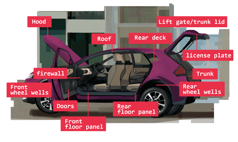 Aby dotrzeć do metalowych powierzchni karoserii, demontujemy tapicerki, boczki, fotele, podsufitkę lub inne elementy zależnie od wybranego zakresu. Robimy to ostrożnie, aby nie uszkodzić żadnych części.